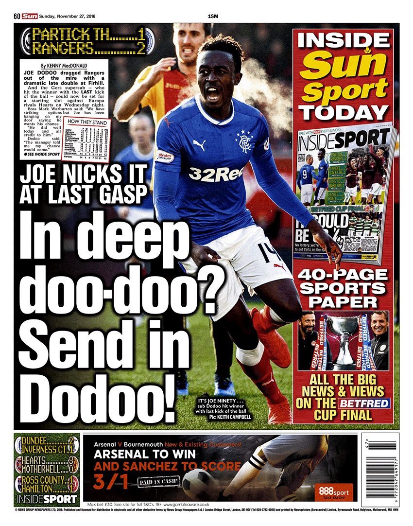 Well, they’ve got to keep the hordes happy. The 2-1 win over Partick moved them into second place as they continued their habit of winning in injury time. it just shows they are battlers who won’t give up, and who will keep going until the last possible avenue of victory is closed off.