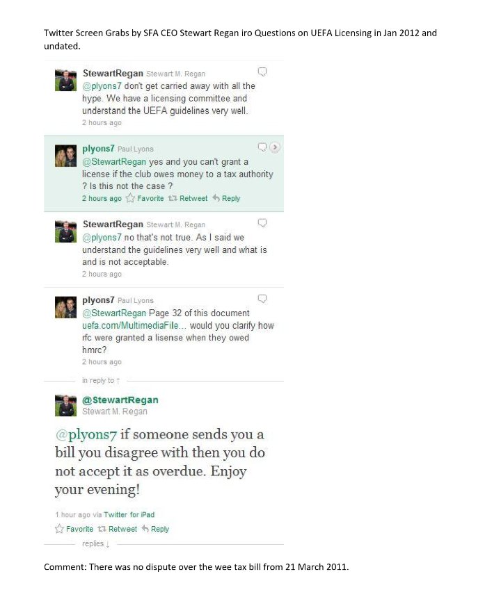 – The email communication between Regan & *Rangers circa 7 Dec 2011 on the subject of overdue payables & the UEFA licence, speaks volumes IMHO.