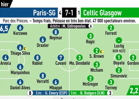 This ratings picture from L’Equipe demonstrates exactly how poor Celtic were, and it is this we should concentrate on putting right, without excuses about how good PSG were.
