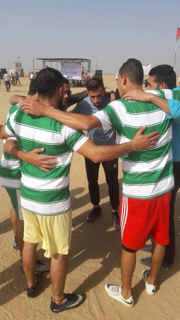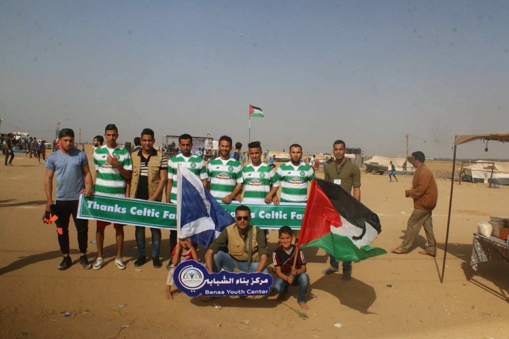 The Benaa Youth Team in the Gaza Strip say thank you to Celtic fans for their continued solidarity with the Palestinian people. The team reached the semi-final of a local tournament before the Israeli army fired rounds of tear gas causing it to be abandoned. #Palestine