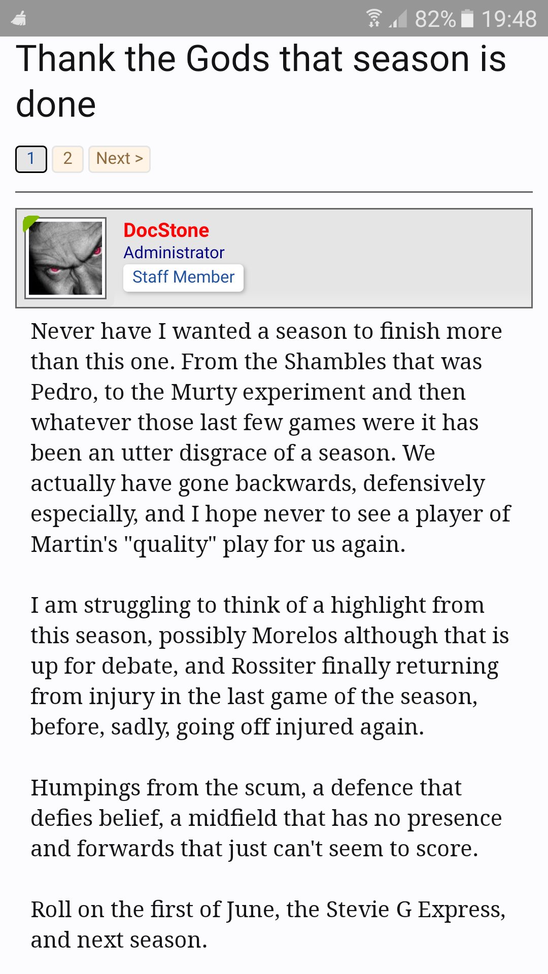 There is a worry, certainly for me, that these breaks have upset the momentum of the squad, momentum in the loosest possible meaning of the word, and there’s a danger that the players will treat the Final with the same half arsed attitude that they have treated most league games.