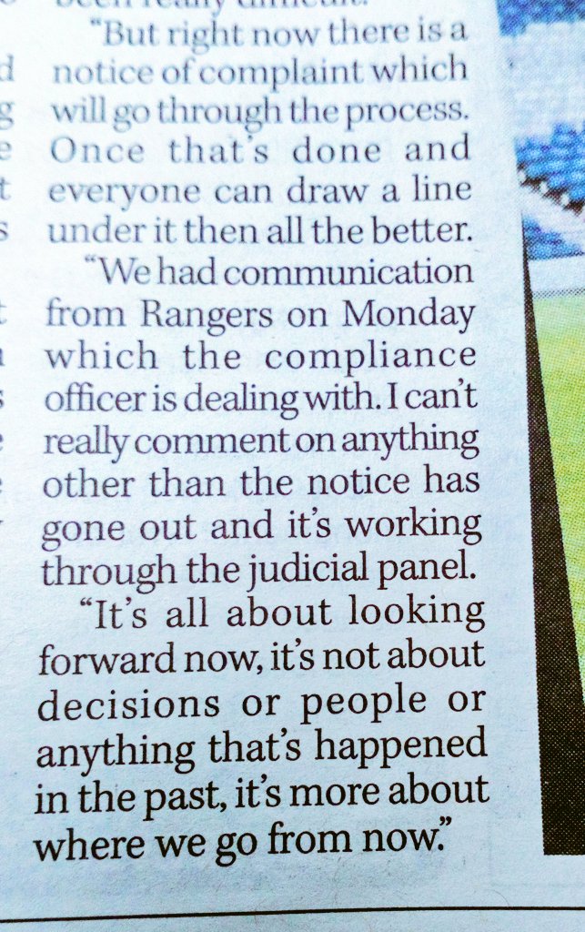 “Mr Hughes should be suspended pending this investigation. I also believe steps must be taken to ascertain whether any other SFA individuals were aware of what Mr Hughes said about Rangers supporters before he was appointed a non-executive director of the governing body in 2015.