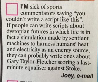A letter to Viz magazine explains perfectly the talent required to work as a summariser or commentator on one of their piss poor shows..