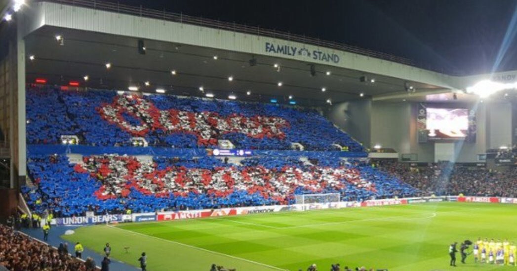 After Celtic manager Brendan Rodgers commented yesterday that he would like to see “rangers ” qualify, aling with Celtic, the Ibrox support looked into their hearts , and amidst the darkness therein, found time to create a lovely tribute to the Irishman with a beautifu tifo display, that says simply “Super Rodgers ”