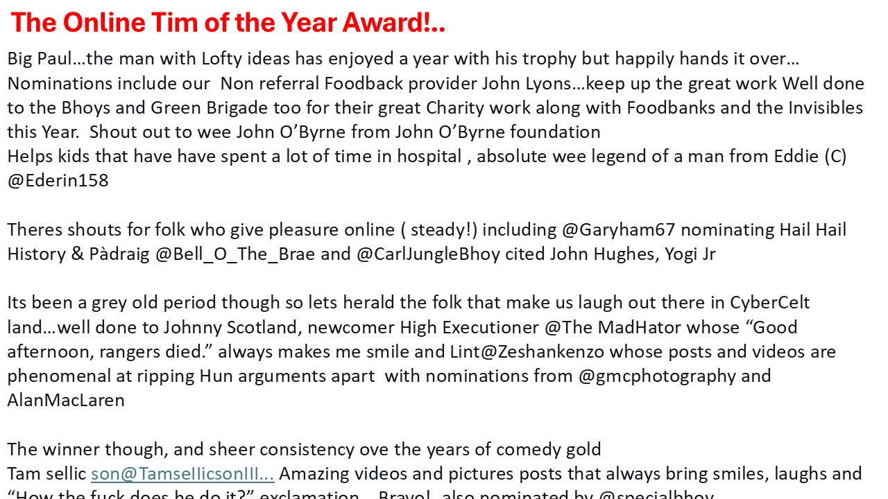 - Celtic Manager of Year