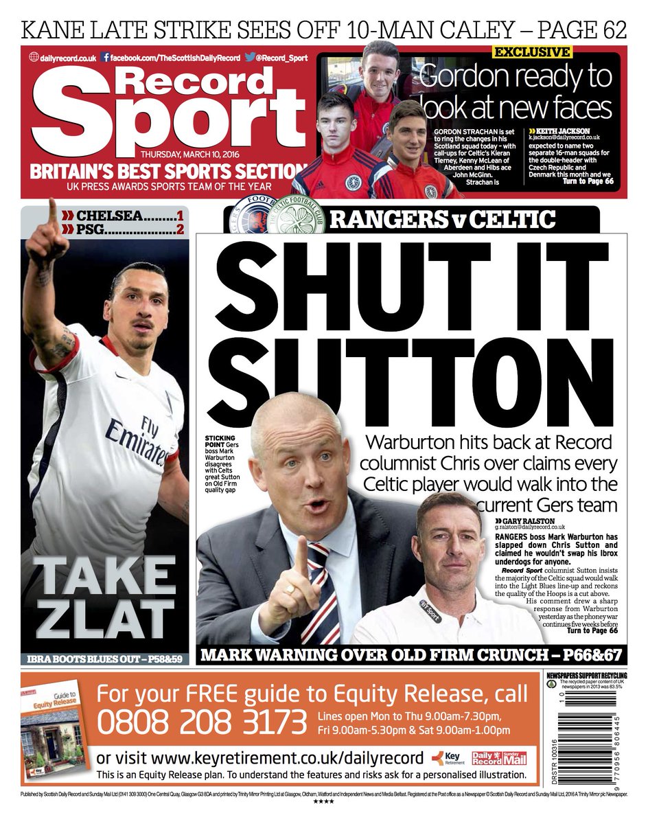 The papers continue to report negative stories, not just ahead of the upcoming Scottish cup game, but also because the team are on a bit of a wobble just now, having allowed aberdeen a glimmer of hope in the championship race.