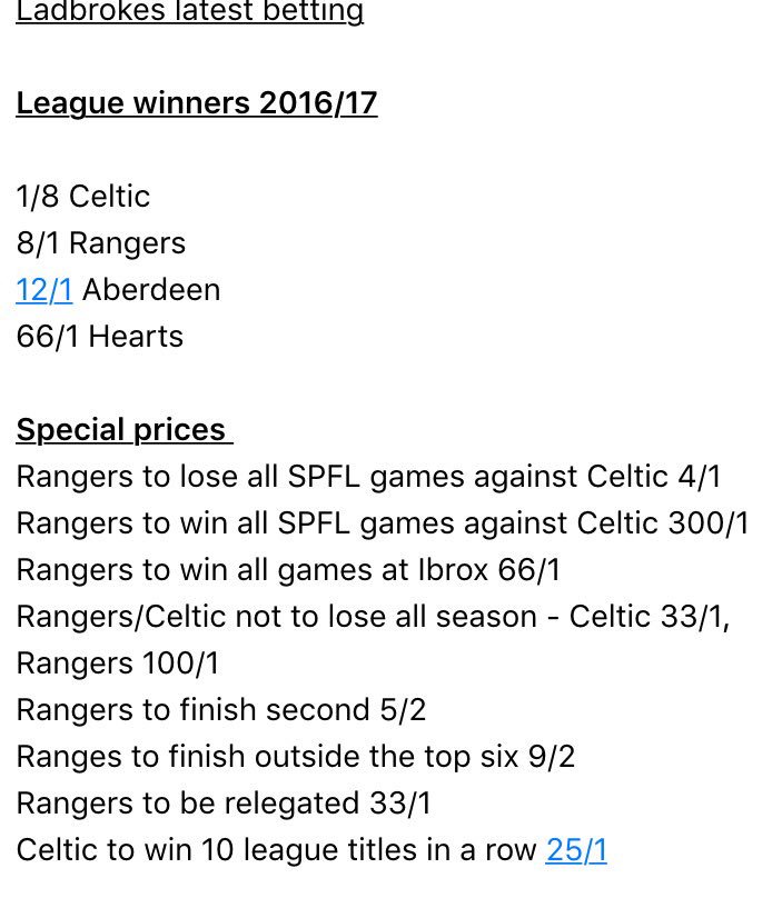 Incredibly , bookmakers Ladbrokes have already installed the Ibrox club as second favourites to win the league.
