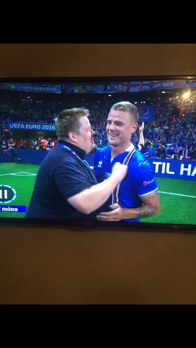 The Icelandic fitness coach was a little relieved after the game, as he’s been under a bit of pressure to have a look at himself, but he can only see the top half;