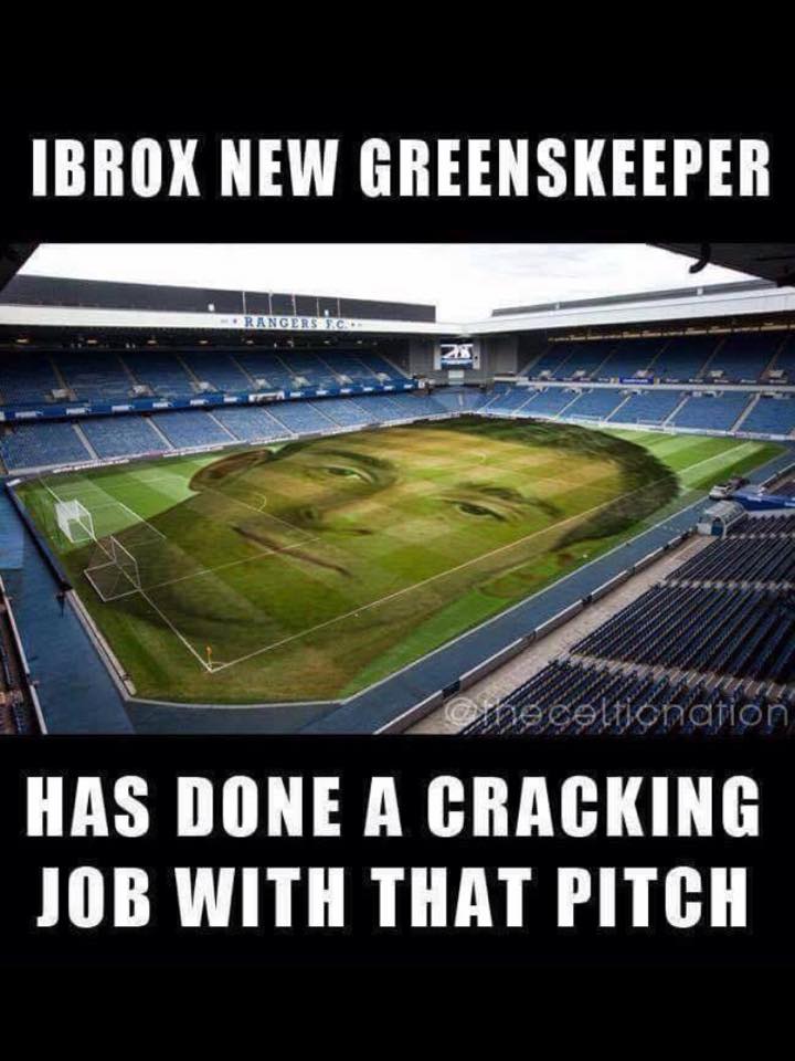 The new groundsman at Ibrox is happy with the new grass he’s put down…