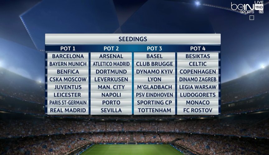We could end up with Leicester, Bayer Leverkusen, and Bruges. Which would hardly set the pulses racing. Teams such as Ajax, Manchester United and Chelsea are not in there, and also missing are famous names such as Milan, Inter, and Liverpool .